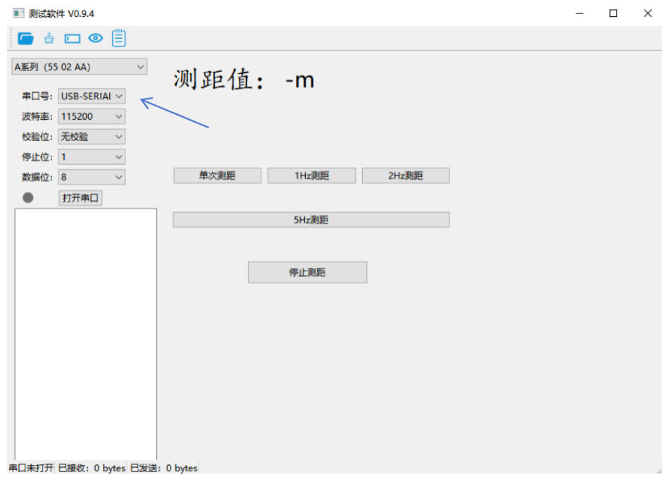 Refer to your product manual to identify the correct communication protocol. For example, if your device uses the “55 02 AA” command for single-range measurement, select the ”A-Series (55 02 AA)” protocol in the software.