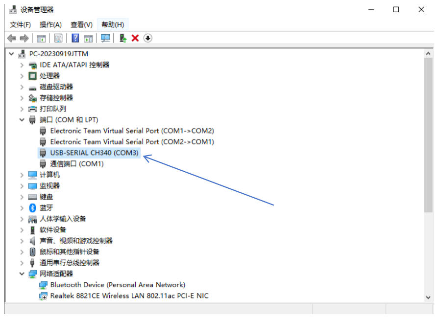 Check your computer’s Device Manager to identify the correct COM port. When using a CH340 TTL-to-USB converter (a common interface module), the port typically appears as COM3.